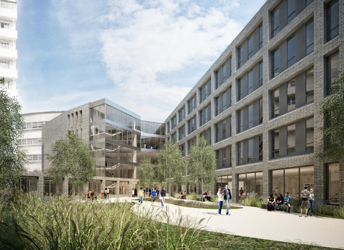 Construction d’un bâtiment regroupant des espaces d’enseignement en sciences de la santé : amphithéâtres, salles de visio-conférence, espaces de vie étudiante et surfaces tertiaires pour accueillir les services de l’Université. Université de Nantes