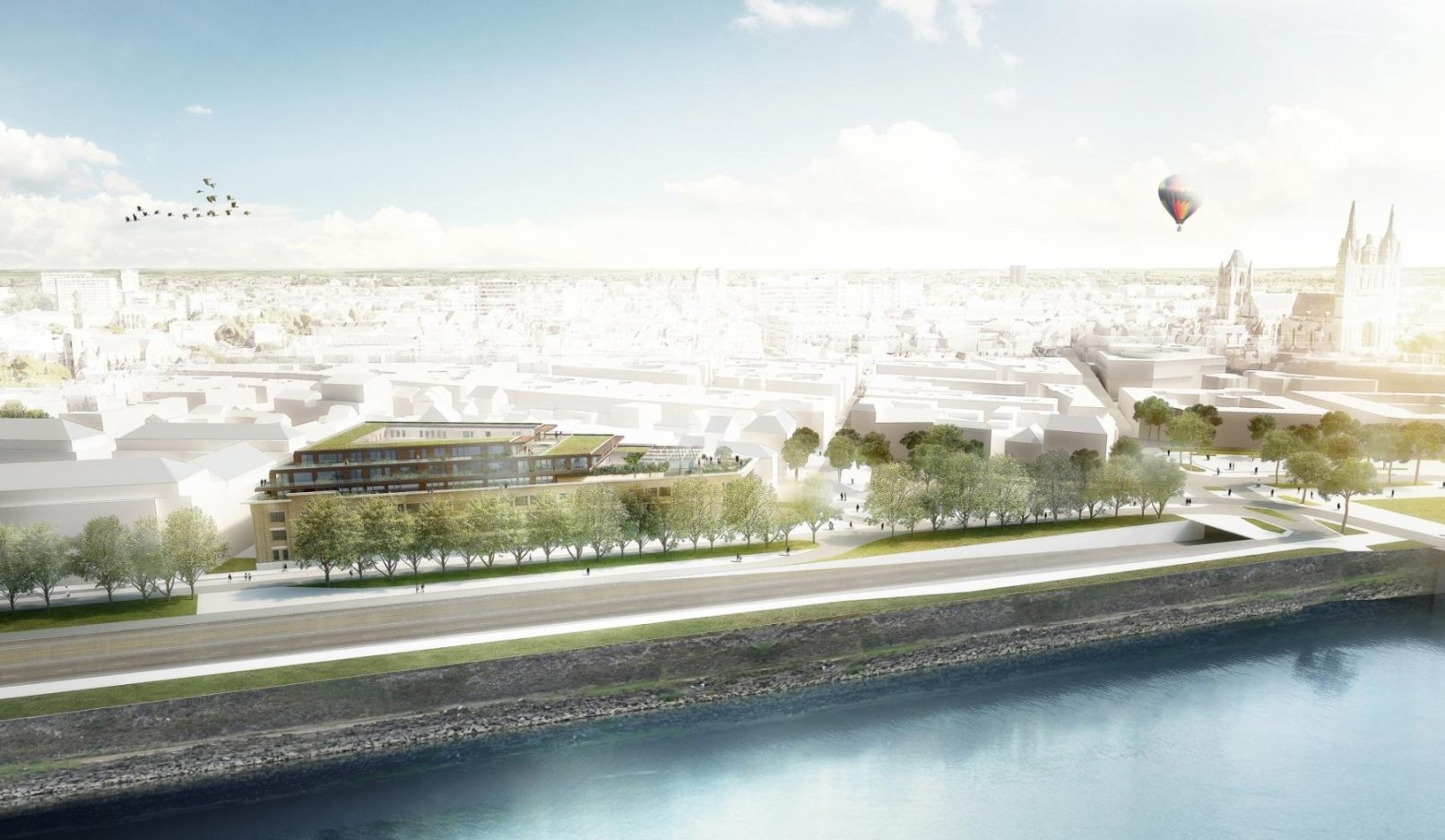 Restructuration et surélévation du siège du Crédit Mutuel d’Anjou avec bureaux, coin start uppers, salles de réunion, un patio, 41 logements et parkings