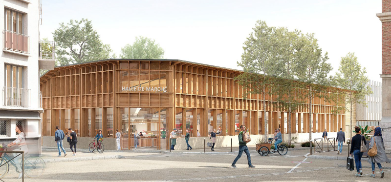 Construction d’une halle de marché transitoire au cœur de la ville, évolutif en bureaux ou médiathèque.