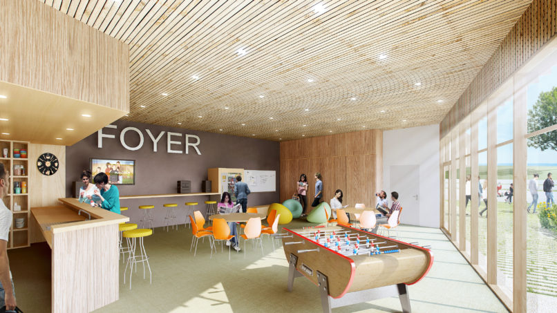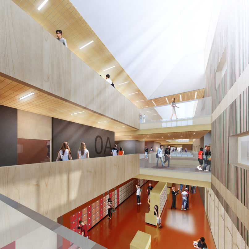Construction du lycée général et technologique d’une capacité de 620 élèves avec possibilité d’extension à 830 élèves comportant un externat, des locaux administratifs et de vie scolaire, un service de restauration et un gymnase.