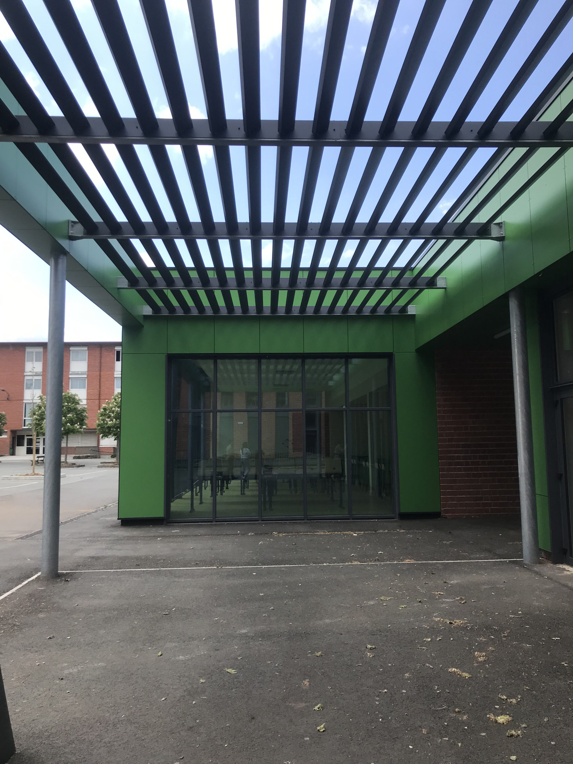 Réhabilitation des internats et d’une partie des externats. Extension de la salle de restauration et rénovation complète des cuisines. Rénovation et extension du gymnases avec création d’un mur d’escalade et d’une salle de musculation. Reprise complète des terrains de sport en extérieur. Travaux phasés sur 3 ans en site occupé.