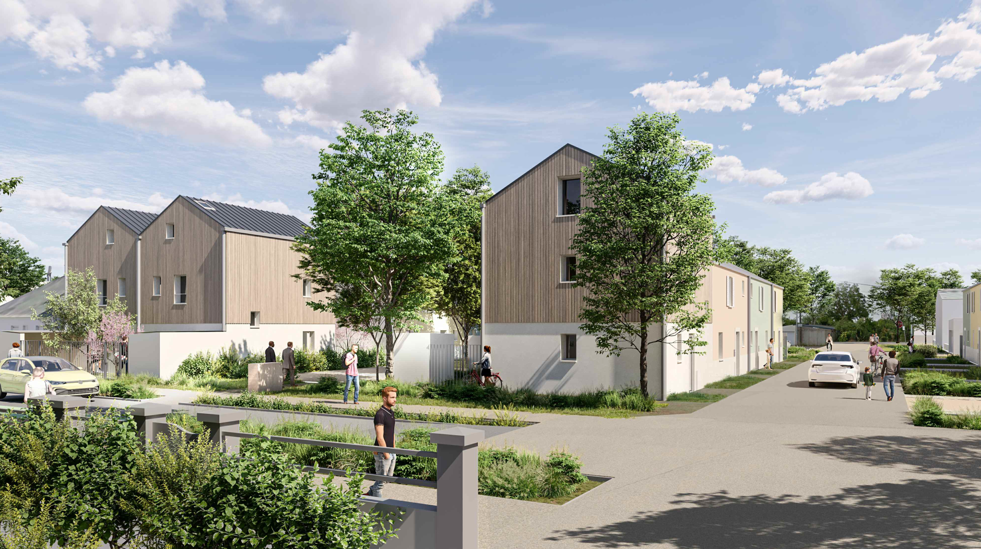 Construction de 78 logements sur 2 ilots. L’îlot A avec 30 logements individuels, bâtiment en R+4 et l’îlot B avec 48 logements collectif sur 2 bâtiments. Aménagements paysagers, jardins, sentiers.